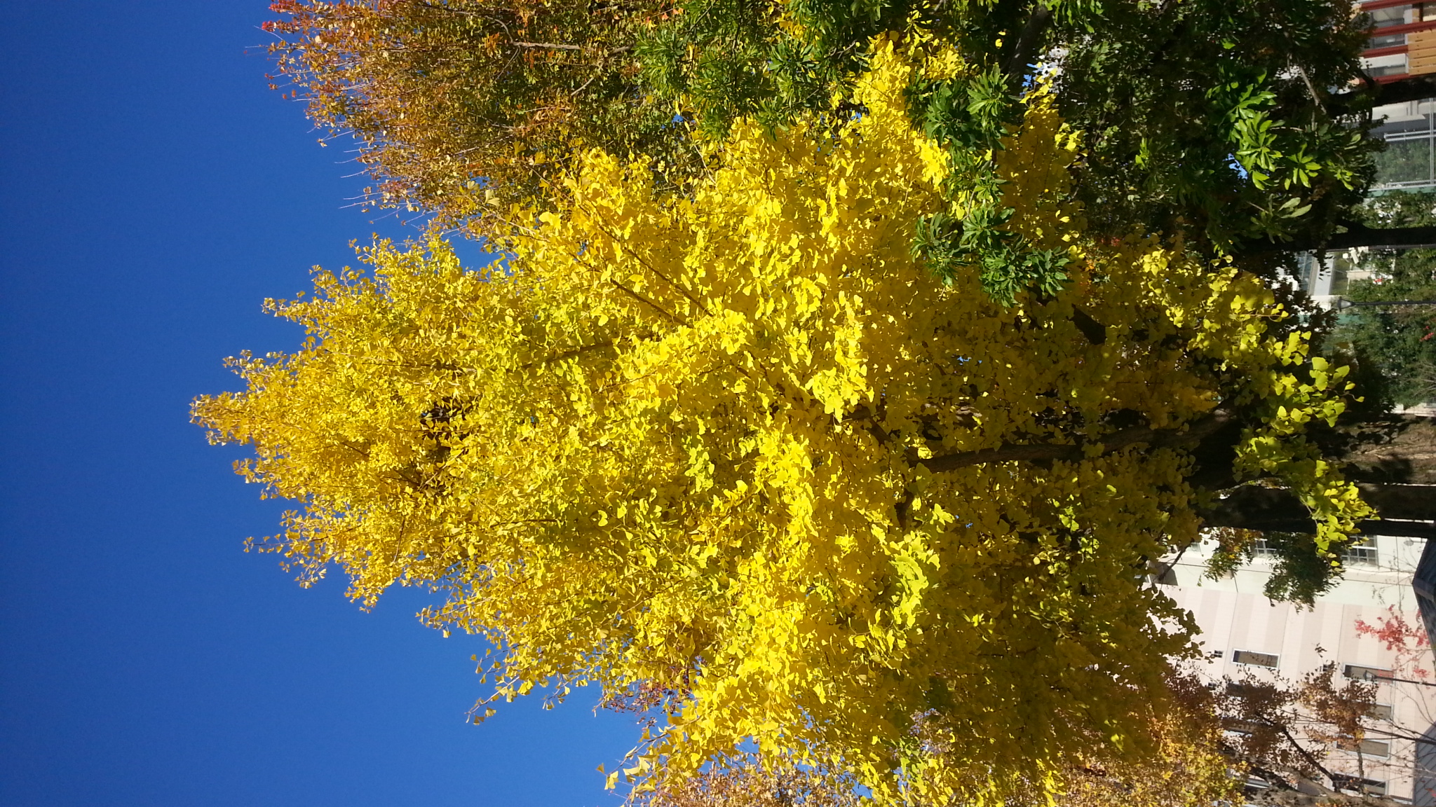 今は秋空を背景に銀杏の黄葉が鮮やかだ。